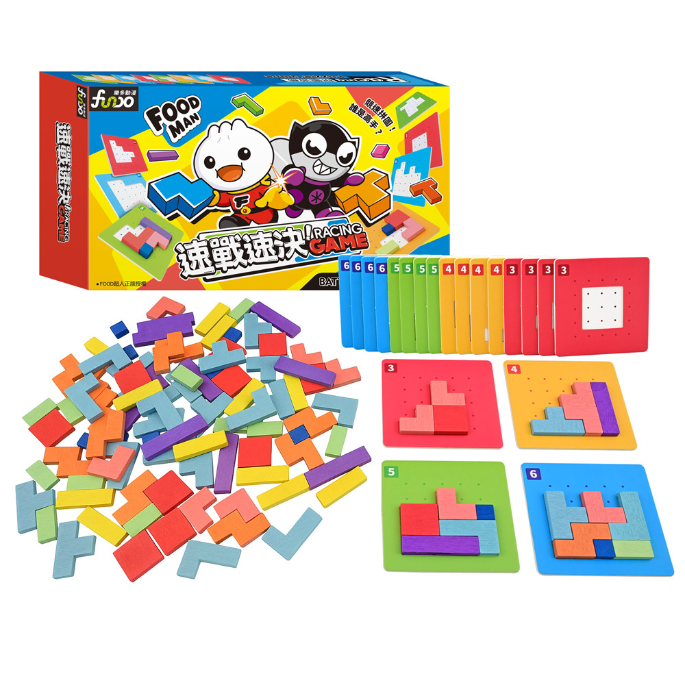 內含多種關卡難度的題卡,搭配色彩繽紛的積木拼圖,玩家需根據卡片提示,快速拼出正 確形狀,考驗速度、準確度與邏輯判斷力。遊戲方式簡單上手,但越玩越刺激,隨著等級提升,孩子的專注力與空間概念也同步成長。快來挑戰誰才是真正的拼圖王者!