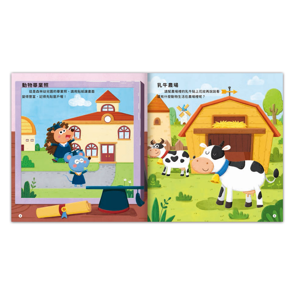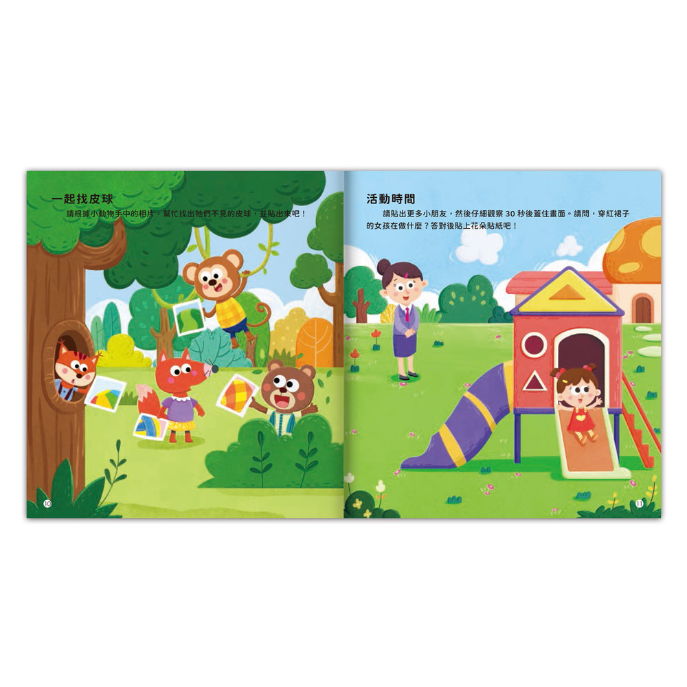 本系列貼紙書透過3-4歲、4-5歲、5-6歲三階段,分齡階段式的讓孩子依照不同的年齡層,選擇適合的貼紙書。全書近350張的貼紙,透過書中系統性的互動方式,以不同的遊戲與動腦邏輯強化孩子的腦力,不僅能培養手眼協調,同時也能發揮創意、強化記憶、訓練邏輯,一起開發最強大腦!