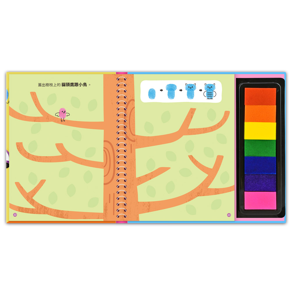 透過指印完成主題畫面,引導孩子自由發揮、編故事。